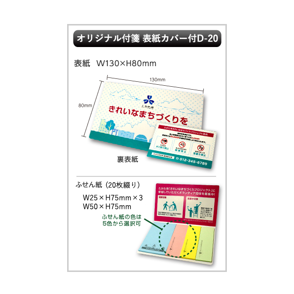 ※下のサムネイルに触れると上の画像が切り替わります オリジナル付箋 表紙カバー付 D-20 20枚綴り 品番※:GF2113080D20 小ロットから作成可能!オリジナルの付箋をノベルティにご活用ください 商品上代 オープン価格 販売価格 下記価格表参照 注文する見積り依頼する ※100個単位でお願いします。 この商品について問い合わせる 商品検索を続ける 商品サイズ ふせん:50×75×2mm(1本)、25×75×2mm(3本) 外装サイズ 130×80mm カラー ブルー、ピンク、イエロー、グリーン、ホワイト(指定可) 材質 表紙:アートポスト220kg(外側片面PP)ふせん:色上質紙(中厚口<四六判66kg相当>) 名入れサイズ 表紙:130×80mmふせん:42×67mm(1本)、17×67mm(3本) ケース入数 1000 内容 ●付箋紙1枚1枚にオリジナルデザインを印刷できます。 ●ふせん枚数の変更やフルカラー印刷等も対応可能です。お問い合わせください。 ●OPP袋入り 入金確認後出荷まで約10日間 ※版代・表紙両面フルカラー名入れ・ふせん1色名入れ込みの価格です。 ※お支払いは銀行振込でお願いいたします。 お見積り依頼フォーム 商品名 オリジナル付箋 表紙カバー付 D-20 20枚綴り 品番 GF2113080D20 数量 100個単位でお願いします。 名入れ する しない 名入れとは… 名入れ色 指定なし 赤 黒 白 黄 青 紺 緑 黄緑 ピンク オレンジ 指定色 名入れ書体 指定なし 明朝体 正楷書体 ゴシック体 丸ゴシック体 行書体 教科書体 角ポップ体 プレゼンス書体 指定ロゴ ※書体サンプル画面 包装 する しない のし巻き する しない 包装紙 包装紙の柄を大きな画像で確認 お届け先 1箇所 2箇所以上 お支払い 銀行振込のみとなります 銀行振込 代金引換 希望納期 2025 2026 2027 年 01 02 03 04 05 06 07 08 09 10 11 12 月 01 02 03 04 05 06 07 08 09 10 11 12 13 14 15 16 17 18 19 20 21 22 23 24 25 26 27 28 29 30 31 日 以前お見積り依頼・ご注文された際にパスワードを設定された方は、こちらにご入力ください。お客様情報を入力する手間が省けます。 メールアドレス: パスワード: パスワードを忘れた方はこちら 顧客情報呼び出し 氏名 氏 名 会社名 郵便番号 半角数字:住所自動検索 住所 都道府県 選択してください 北海道 青森県 岩手県 宮城県 秋田県 山形県 福島県 茨城県 栃木県 群馬県 埼玉県 千葉県 東京都 神奈川県 新潟県 富山県 石川県 福井県 山梨県 長野県 岐阜県 静岡県 愛知県 三重県 滋賀県 京都府 大阪府 兵庫県 奈良県 和歌山県 鳥取県 島根県 岡山県 広島県 山口県 徳島県 香川県 愛媛県 高知県 福岡県 佐賀県 長崎県 熊本県 大分県 宮崎県 鹿児島県 沖縄県 市区町村 町名 番地 電話番号 例:0000-00-0000 FAX番号 例:0000-00-0000 メールアドレス 携帯アドレス パスワード ※パスワードを設定すれば、次回以降お客様情報の入力の手間が省けます。 お問い合わせご質問 ご注文内容確認 お見積り依頼する 印刷サイズ 表紙・裏表紙・中面フルカラー名入れ/ふせん紙1色名入れ 名入れ代・版代込み 数量 単価 合計 100個 @918(税込@1,009.8) ¥91,800(税込¥100,980) 200個 @553(税込@608.3) ¥110,600(税込¥121,660) 300個 @418(税込@459.8) ¥125,400(税込¥137,940) 500個 @325(税込@357.5) ¥162,500(税込¥178,750) 1,000個 @250(税込@275) ¥250,000(税込¥275,000) 関連カテゴリー 文房具 メモ・ふせん 関連特集 オリジナリティで差をつける! オリジナルふせん特集